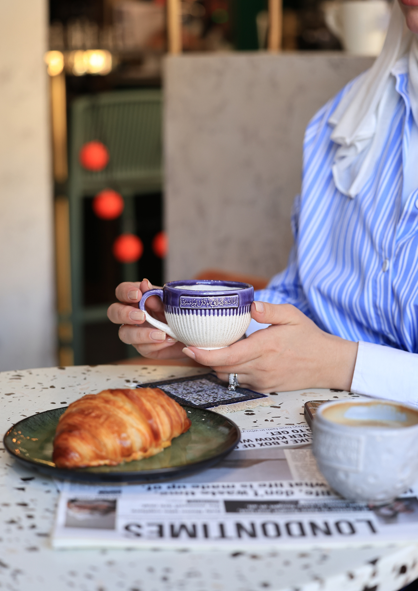 • كل كوب مصنوع خصيصاً بشكل يدوي كقطعة فريدة لذلك تحدث بعض الاختلافات الطبيعية في توزيع اللون وكثافته وتغطيته بين كل كوب وكوب.