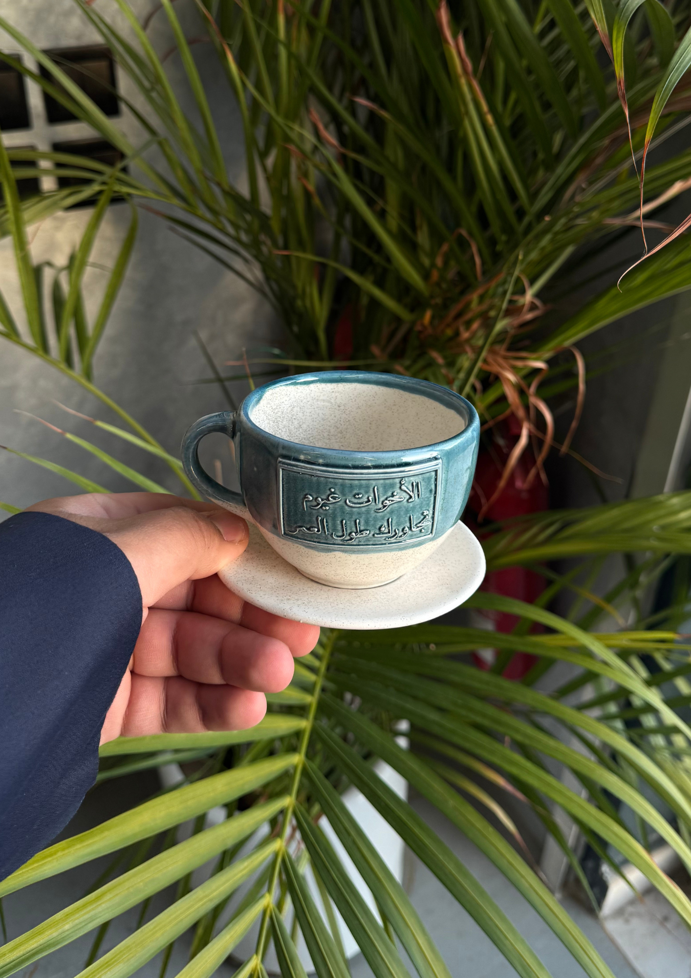 • كل كوب مصنوع خصيصاً بشكل يدوي كقطعة فريدة لذلك تحدث بعض الاختلافات الطبيعية في توزيع اللون وكثافته وتغطيته بين كل كوب وكوب.