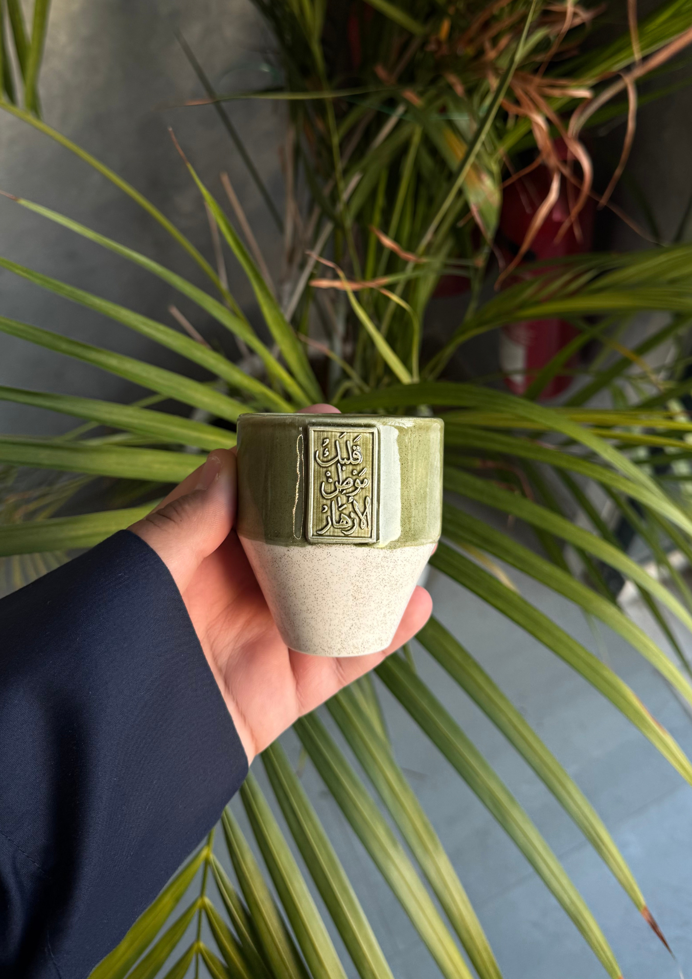 كوب خزفي يدوي الصنع و الحفر